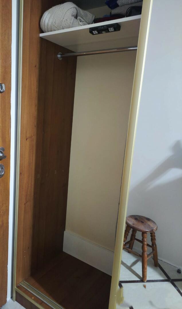 Szafa do przedpokoju z lustrem. Używana w stanie dobrym- niewielkie ślady użytkowania. Łączna szerokość 173cm w tym 150cm szafy i 20 cm półki. Wysokość 2,5m. Do odbioru osobistego. Najlepiej samemu rozkręcić by później łatwiej było złożyć.