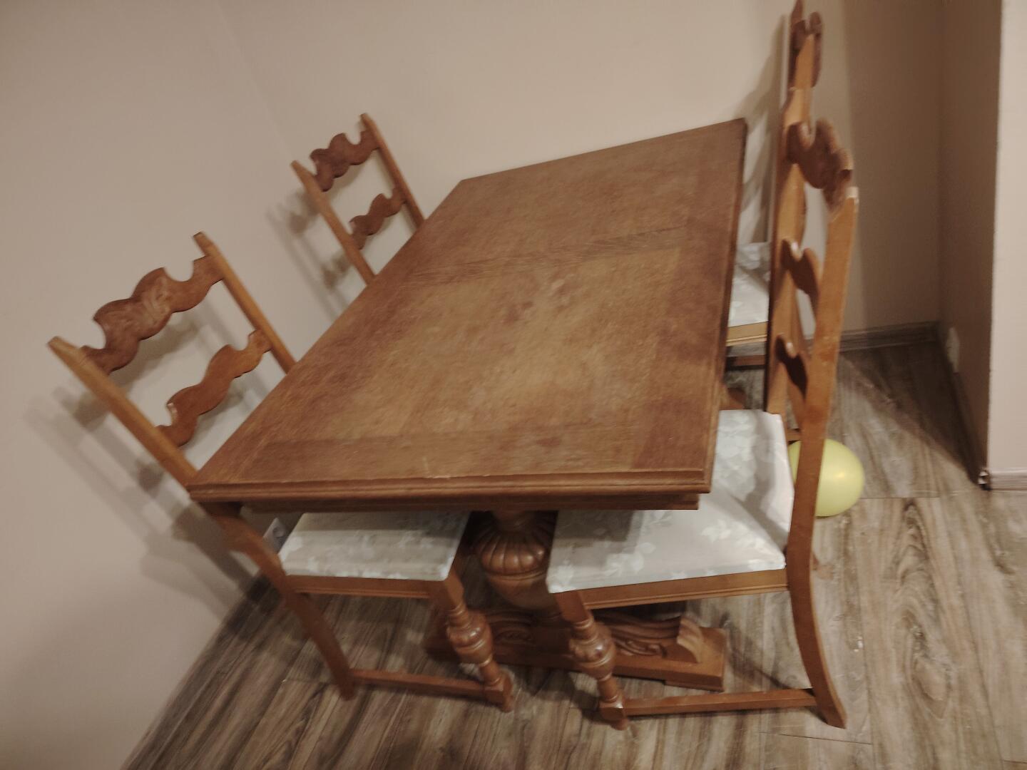 Proszę pisać SMS, Sprzedam solidny stół dębowy rozkładany z 4 krzesłami; cena do małej negocjacji.