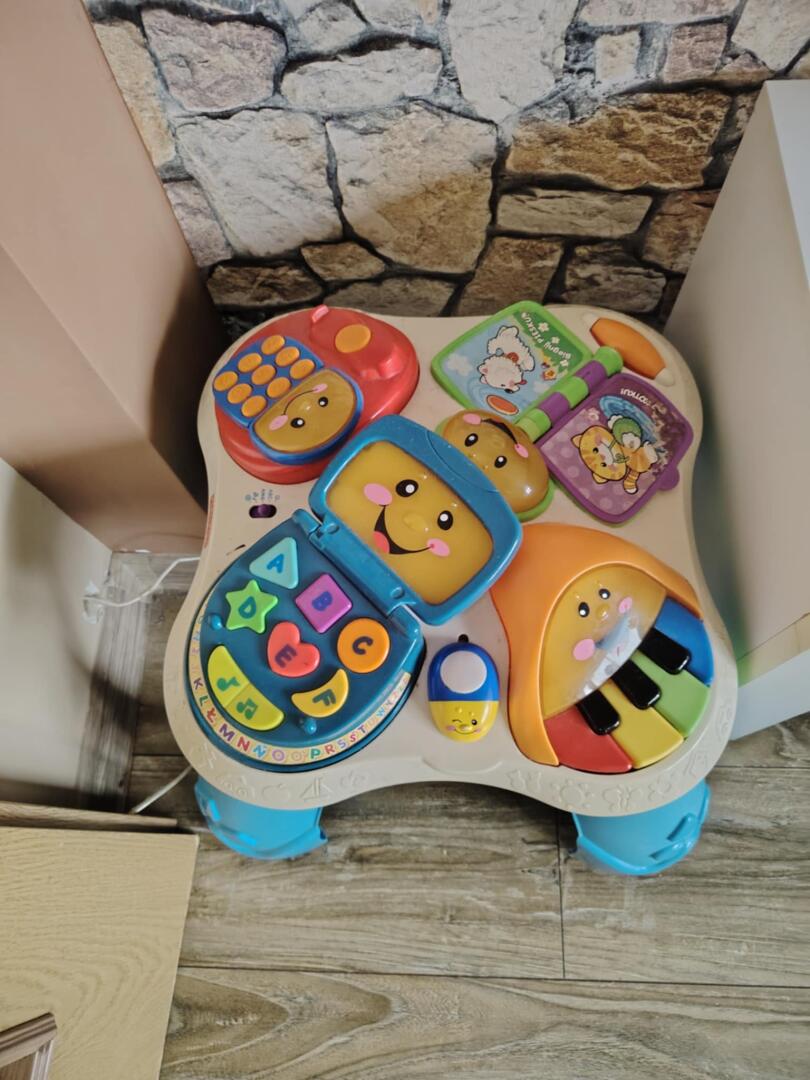Proszę pisać SMS, stolik interaktywny, brakuje w nim słuchawki i książeczka ma pozdzierane lekko naklejki, lecz wszystko działa jak trzeba, nóżki są wyciągane